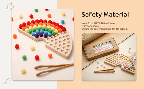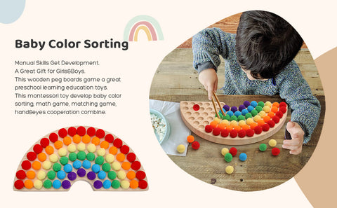 👼This toy helps children with: fine motor skills and the pincer grip, color matching and sequencing, color identification, counting and learning the colors of a rainbow.